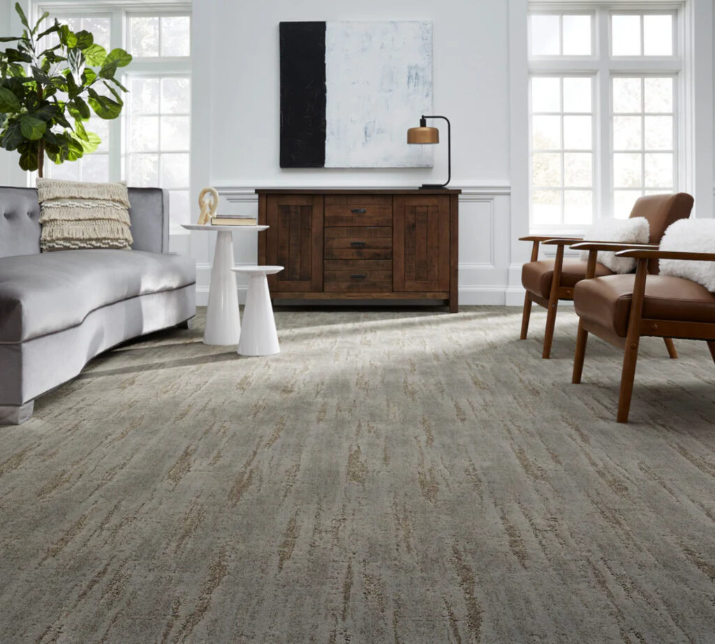 Textured carpet uses fibers cut at varying heights to create a subtle dimension that helps disguise traffic patterns and minor stains. It provides a strong balance between durability, comfort, and appearance retention, making it a dependable option for living rooms and multi-use spaces. Families who want softness without sacrificing long-term performance often prefer this style.