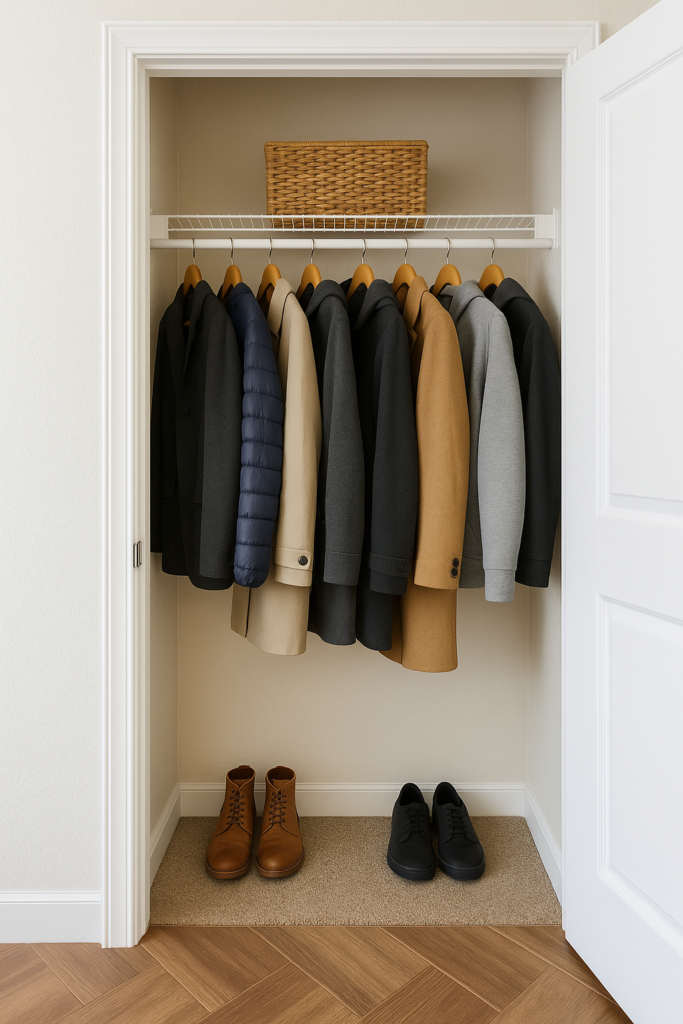 Coat closets are usually located near the front or back entryway, making them one of the most high-traffic storage areas in the home. Flooring needs to withstand wet shoes, dripping umbrellas, and dropped items like bags or accessories. Tile is an excellent choice for maximum moisture resistance, vinyl plank flooring offers a balance of comfort and durability, and laminate provides a cost-effective option with plenty of styles to match your entryway.